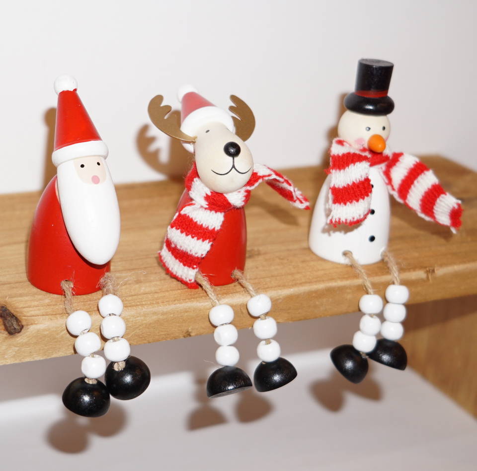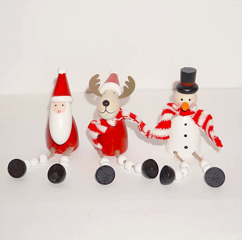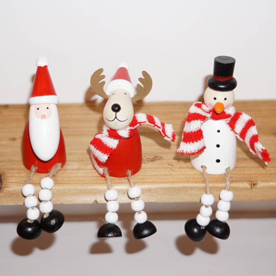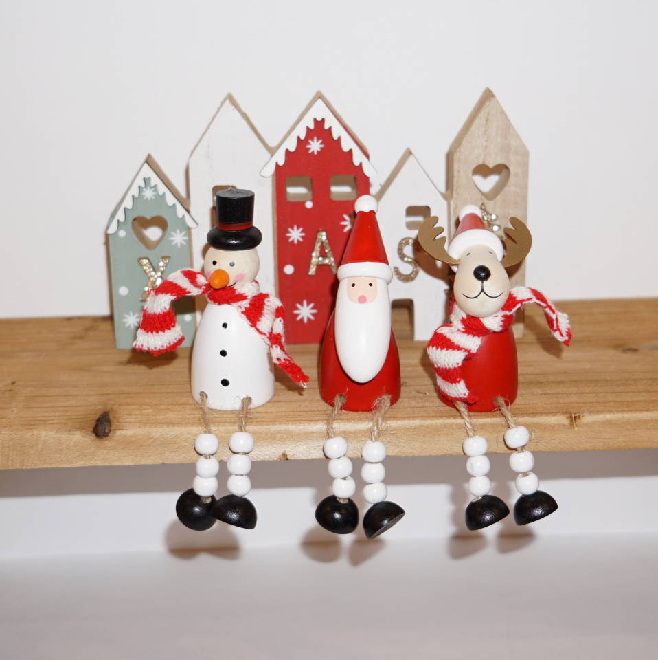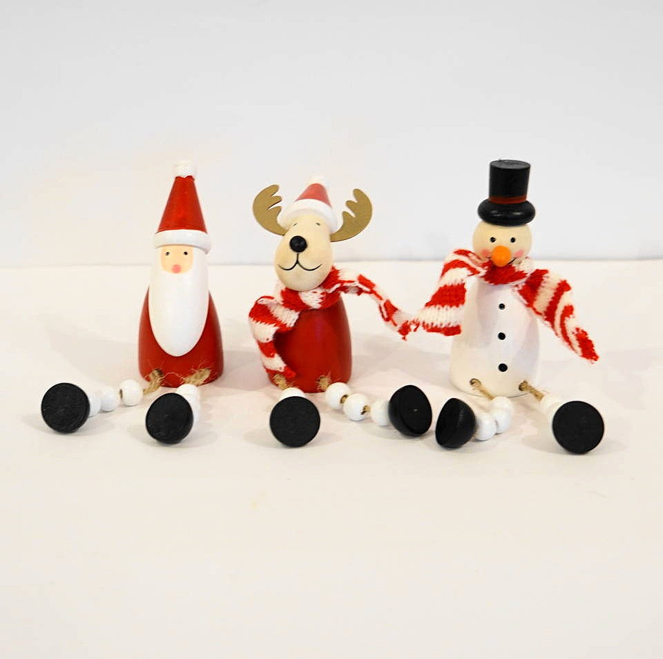 トナカイ、サンタ、スノーマンの木製オブジェセットです。