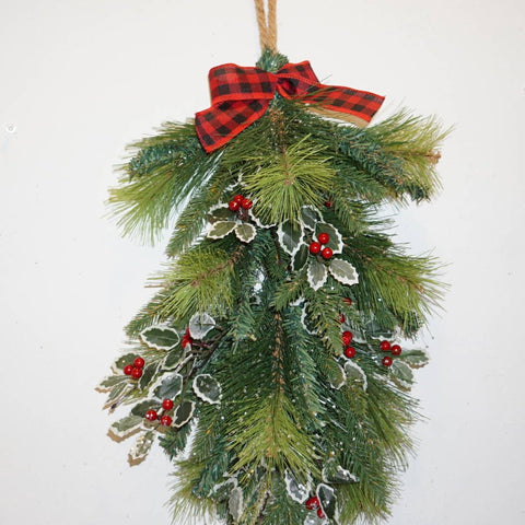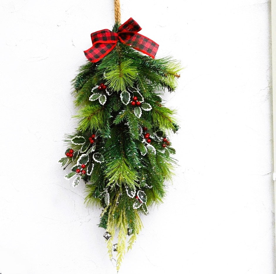 ハンギングドロップ ツリー造花 クリスマスリース 縦型 1943RD