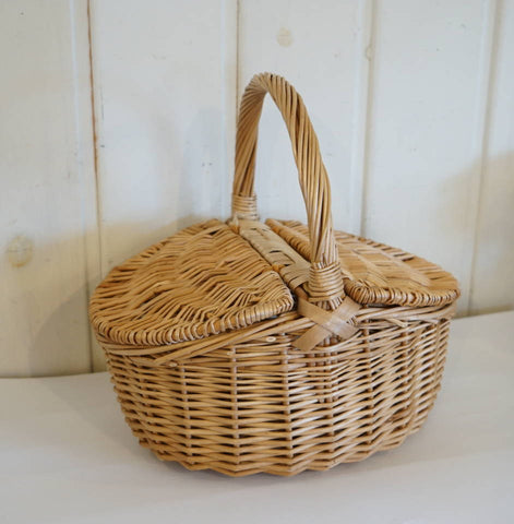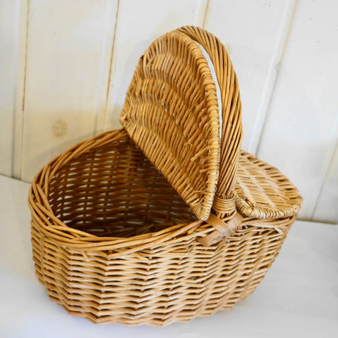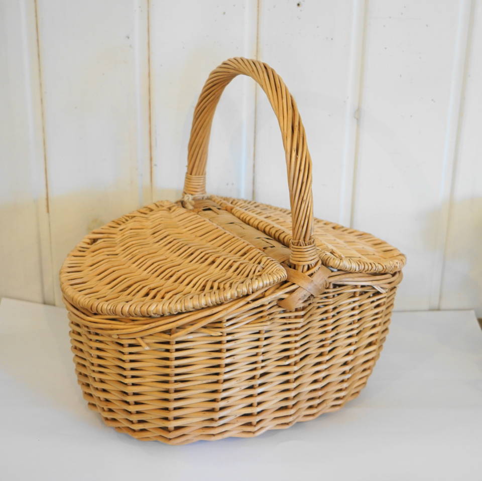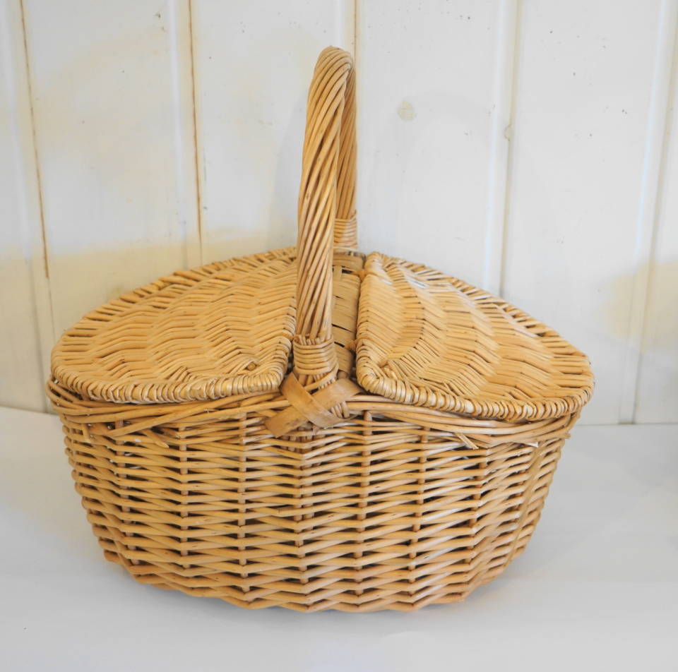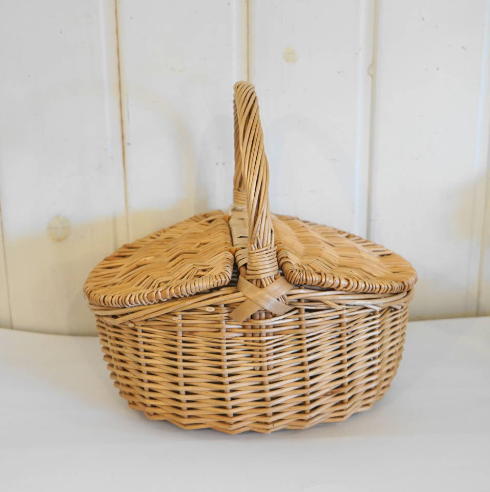ピクニックバスケット ワンハンドル フタ付き 柳バスケット