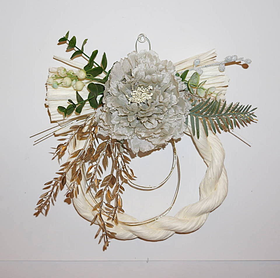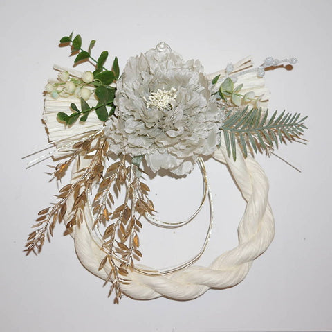 しめ縄飾りにピオニーなどを使いアレンジしました。