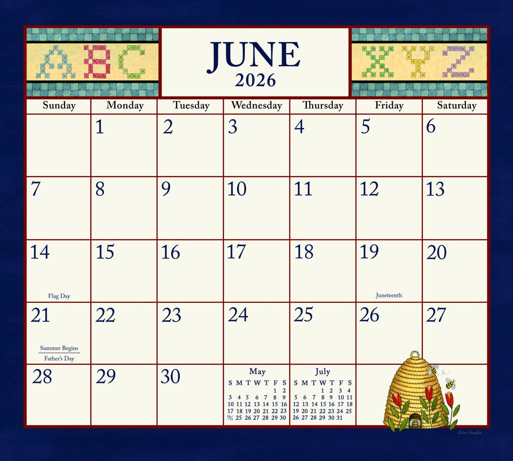 カントリーテイストのかわいいイラストの壁掛けカレンダーです。